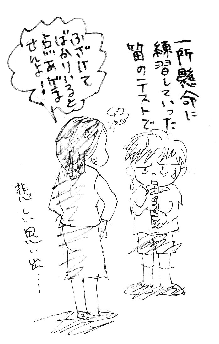 絵を描いていると誤解されるのですが、私はかなり不器用なのでものすごい不安です。なので楽器は、昔学校でやったことのあるリコーダーを担当いたします。それにも嫌な過去があるのですが・・(イラスト参照)。他のメンバーはタンバリンとウクレレ。ウクレレ以外は、ちょっと小学生っぽいです。