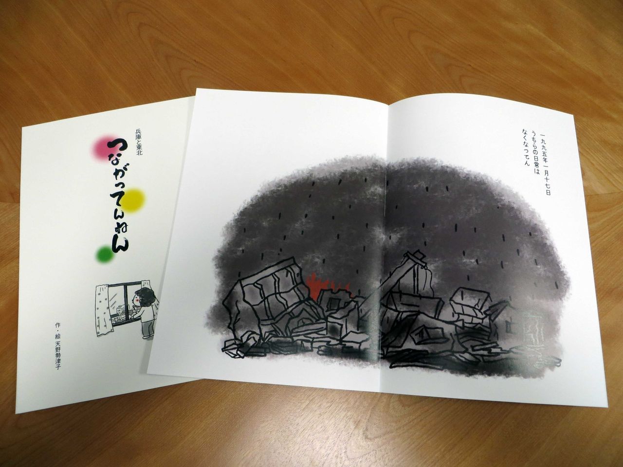 阪神淡路大震災にあったおばちゃんを主人公にした、本文わずか10ページのミニ絵本。兵庫のおばちゃんが抱く東北の女性たちへの想いを形にしてみました。
